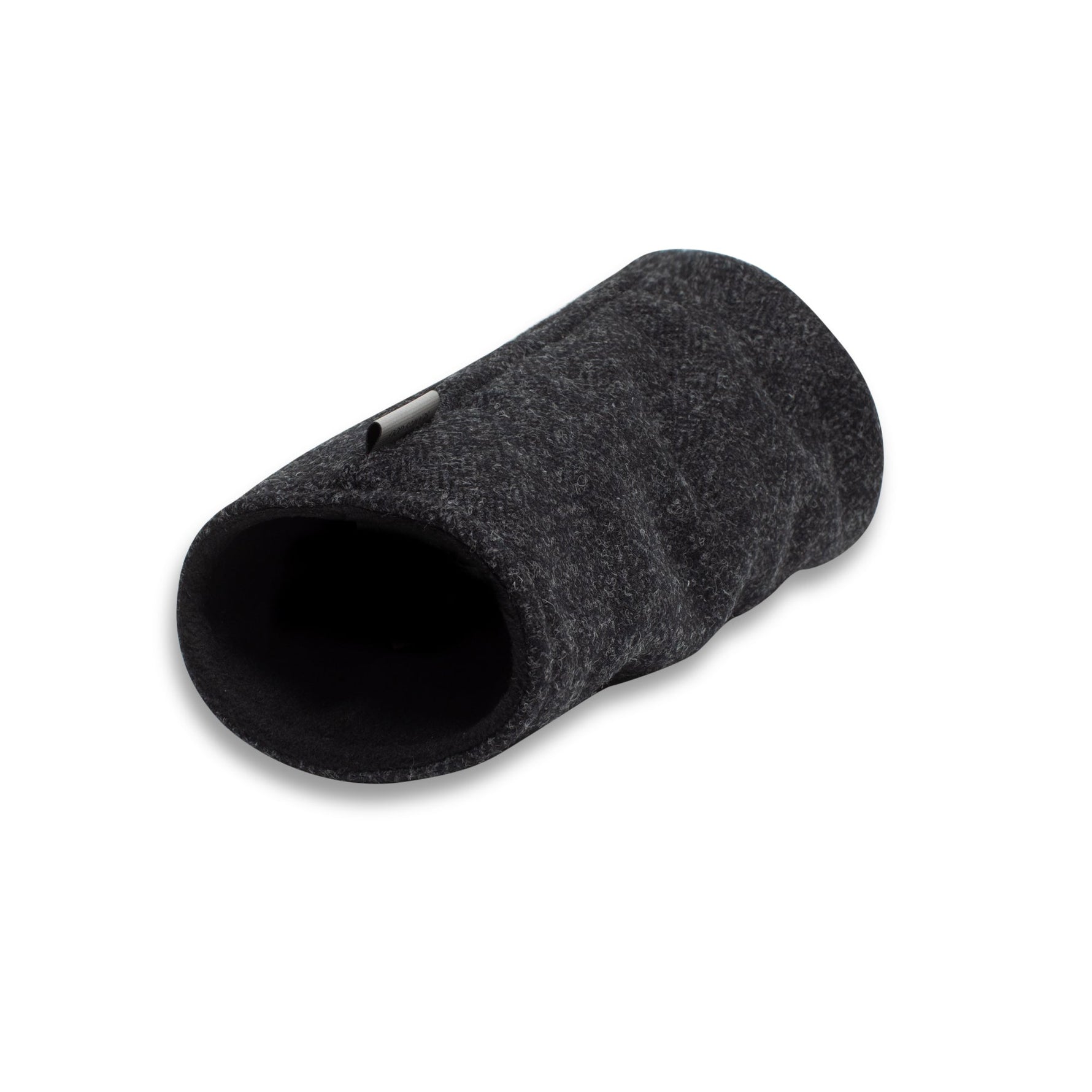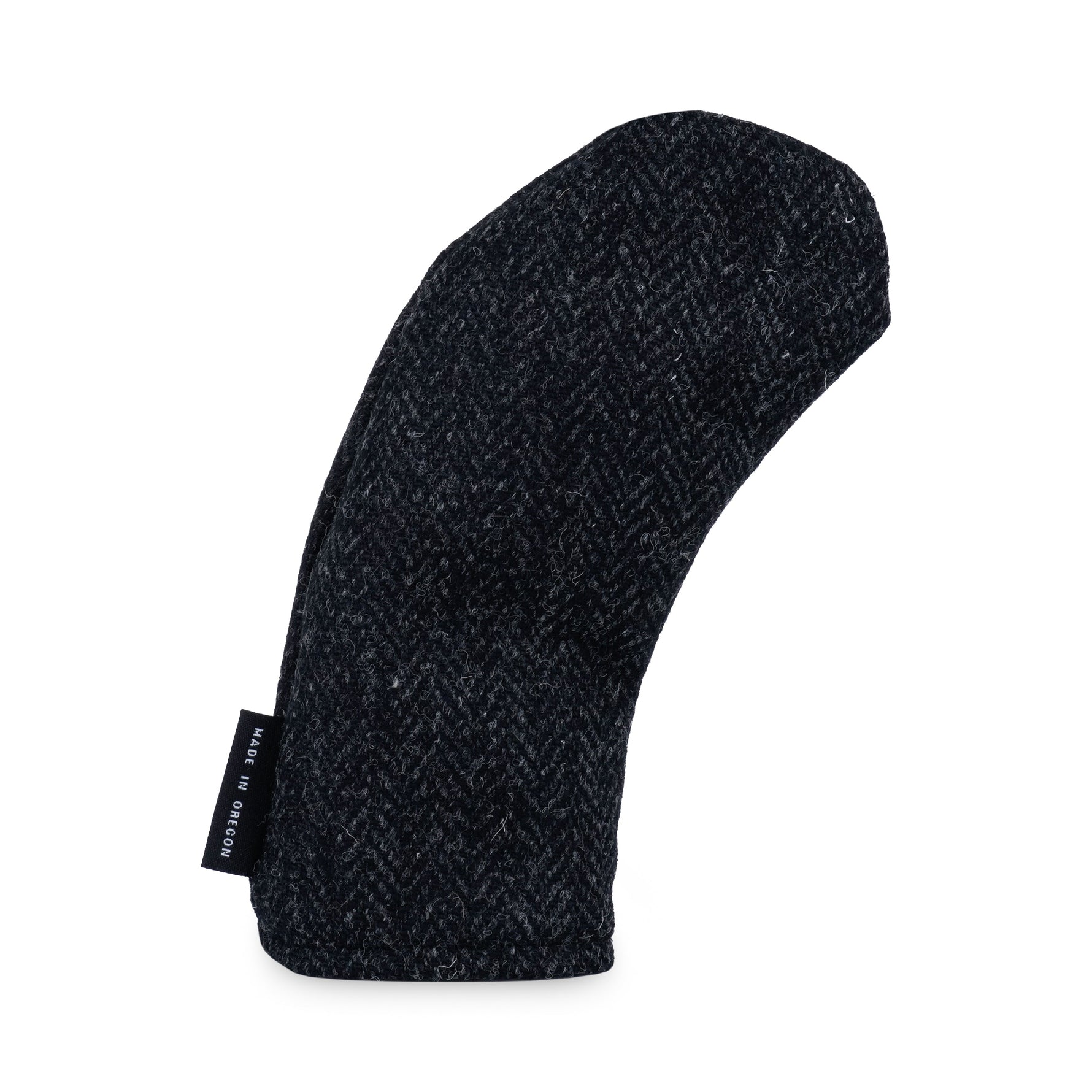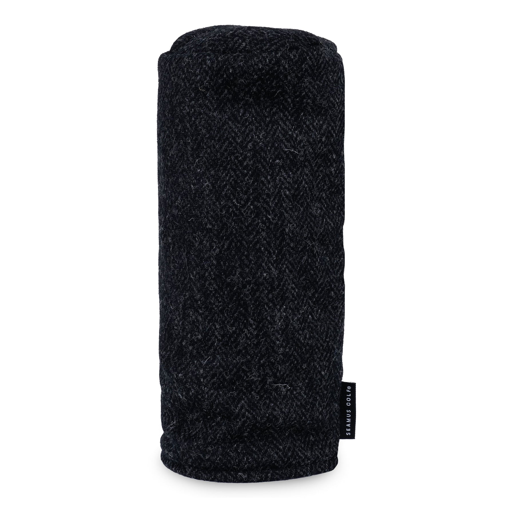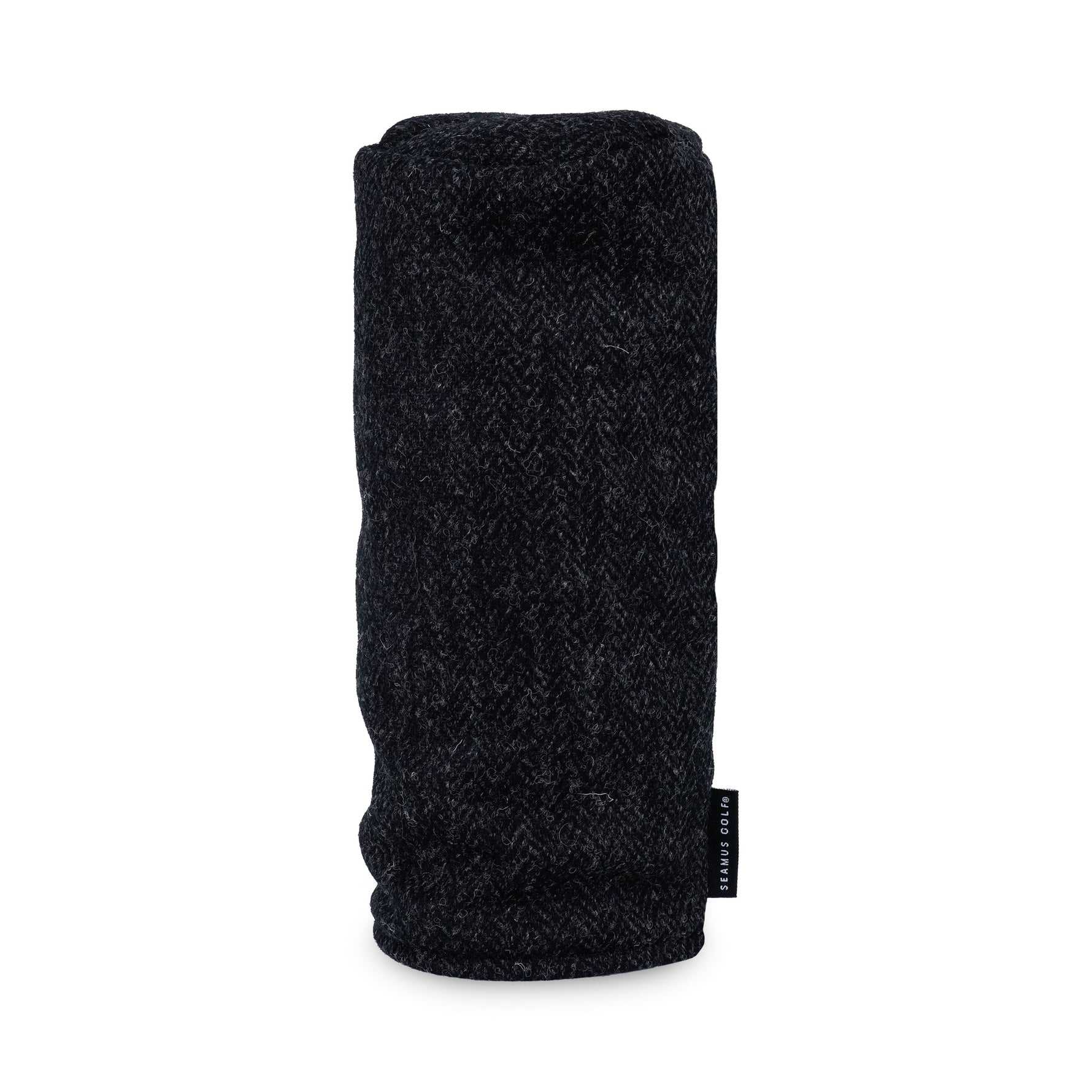 The Black Harris Tweed is a hand-woven Harris tweed from the Outer Hebrides in Scotland. The herringbone pattern is predominantly black with hints of charcoal throughout.