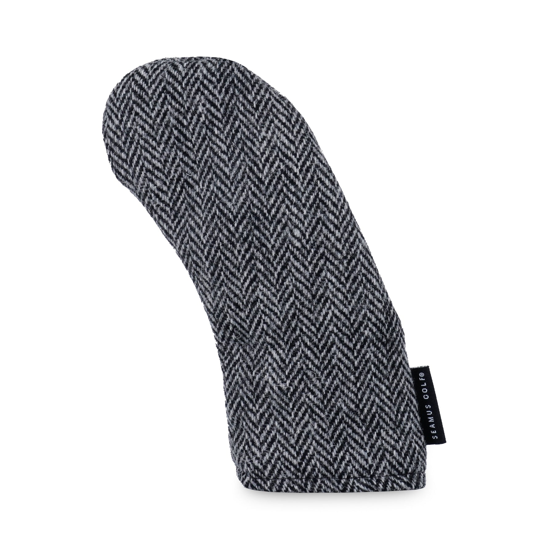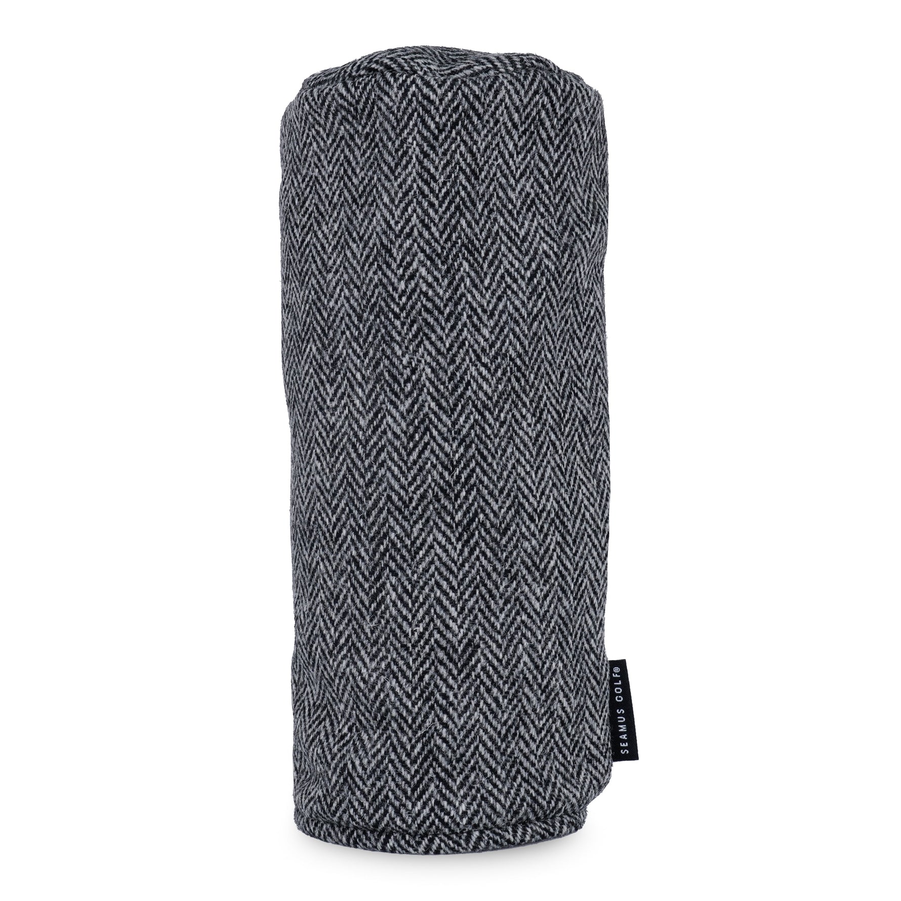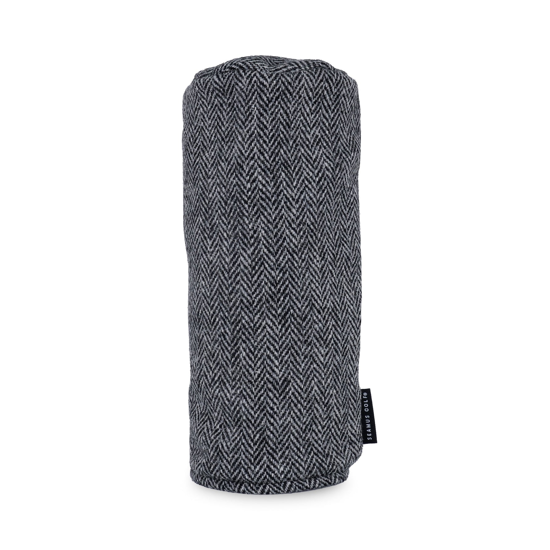 The Charcoal Harris Tweed is a hand-woven Harris tweed from the Outer Hebrides in Scotland. The herringbone pattern is predominantly grey with hints of black throughout.