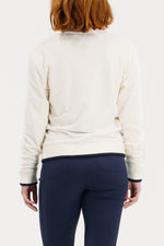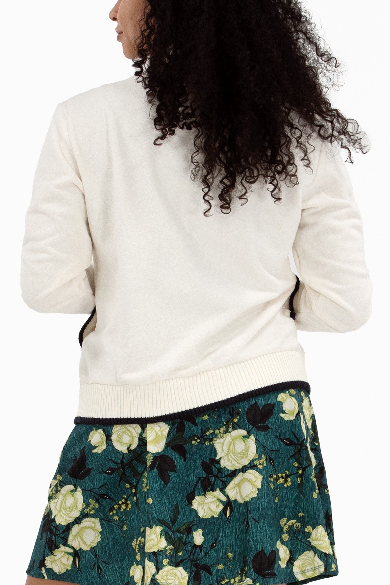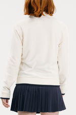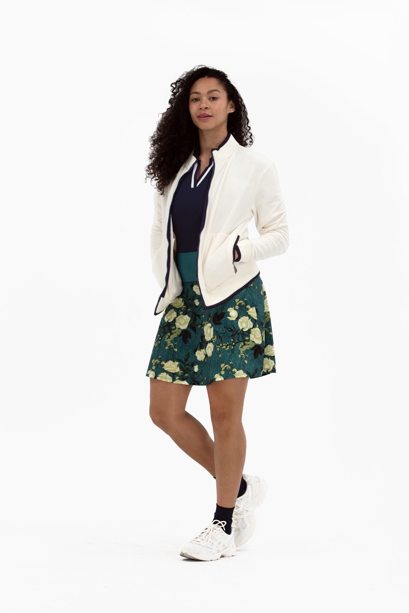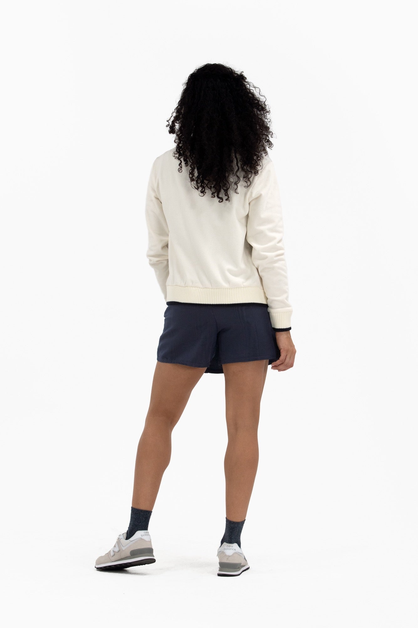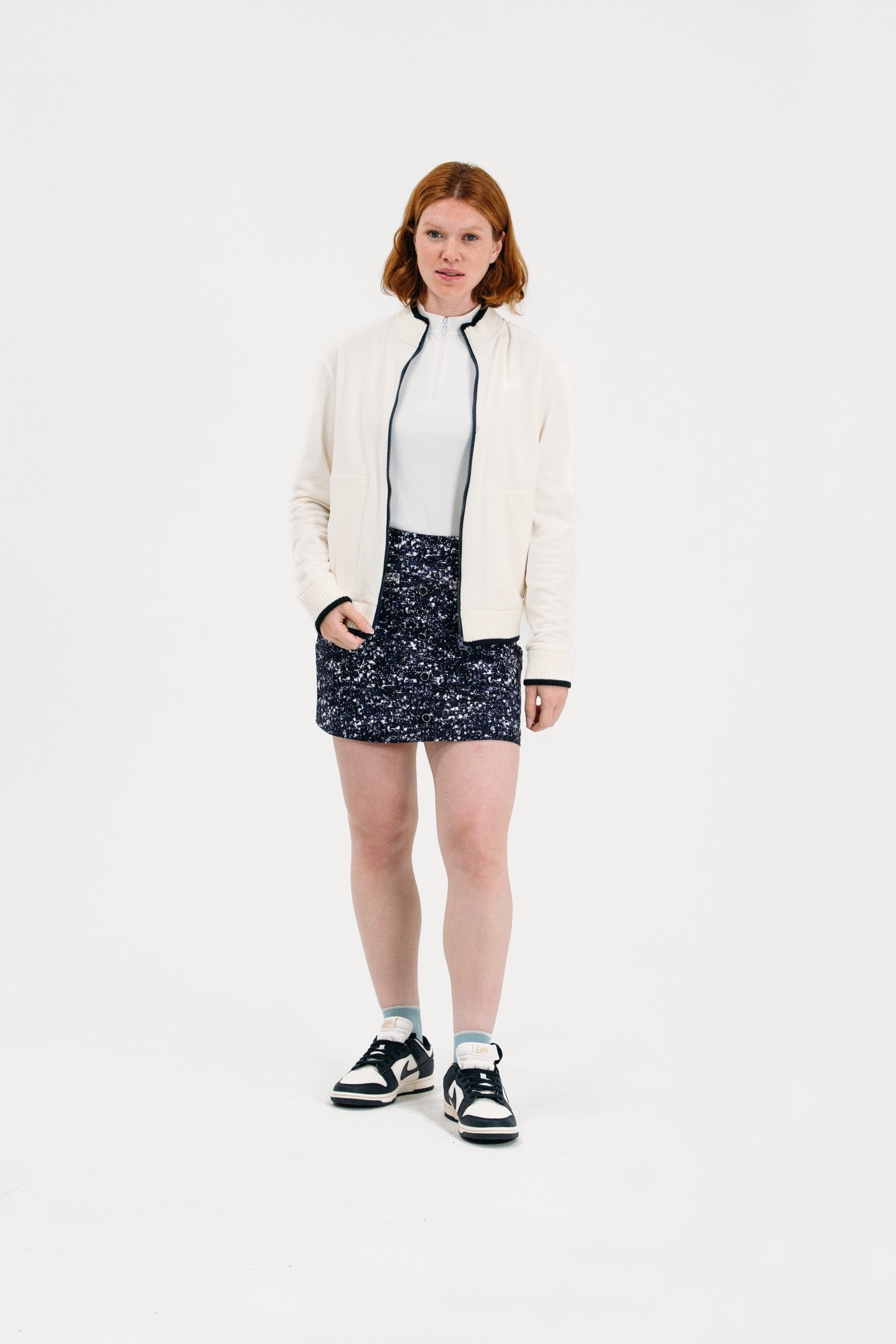 Our fan-favorite bomber is back but in ultra-soft stretch fleece! Equal parts fashion and sport: made from a technical 4-way stretch, mid-weight stretch fleece and trimmed with coordinating navy and white rib at neck, cuff and hem. Dual front zippered pockets and shaped seams that contour fit, making her the most flattering layer in your wardrobe.