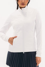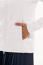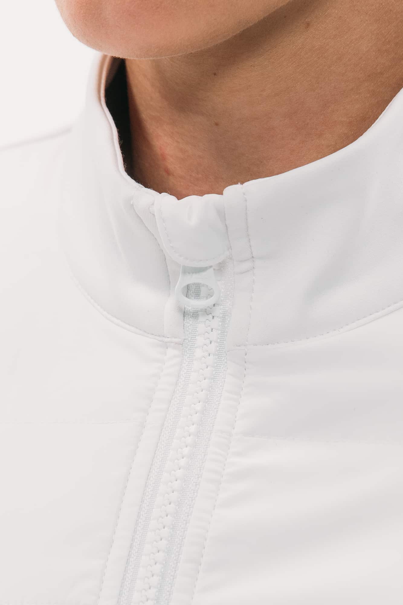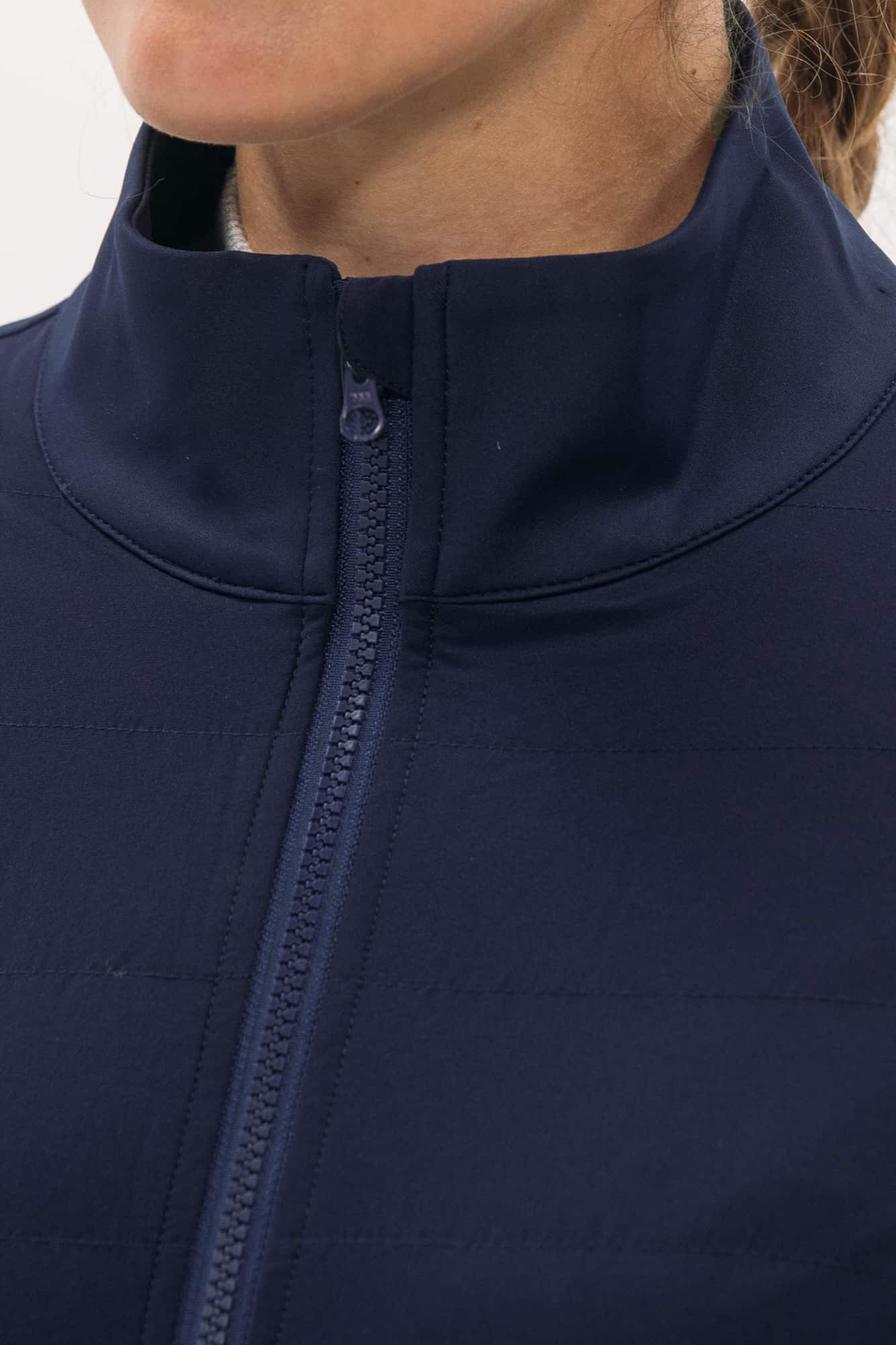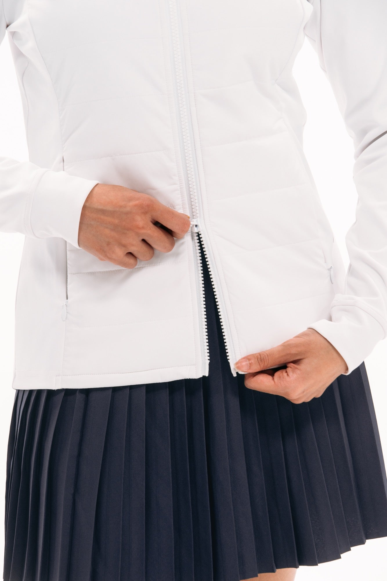 The perfect mashup of your favorite zip-up and quilted vest. This mid to outer layer is soft, stretchy and ultra-durable. Made from a mid-weight technical stretch jersey layered with a quilted nylon front. Dual front zipper pockets for storage and 2-way zip that allows for additional flexibility in fit. Gusseted underarms give freedom of motion while providing a tailored silhouette.