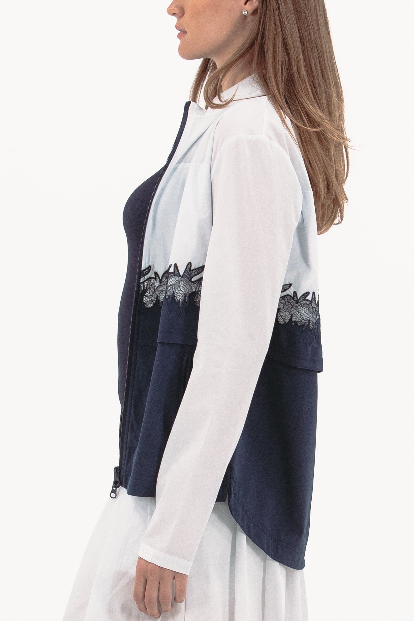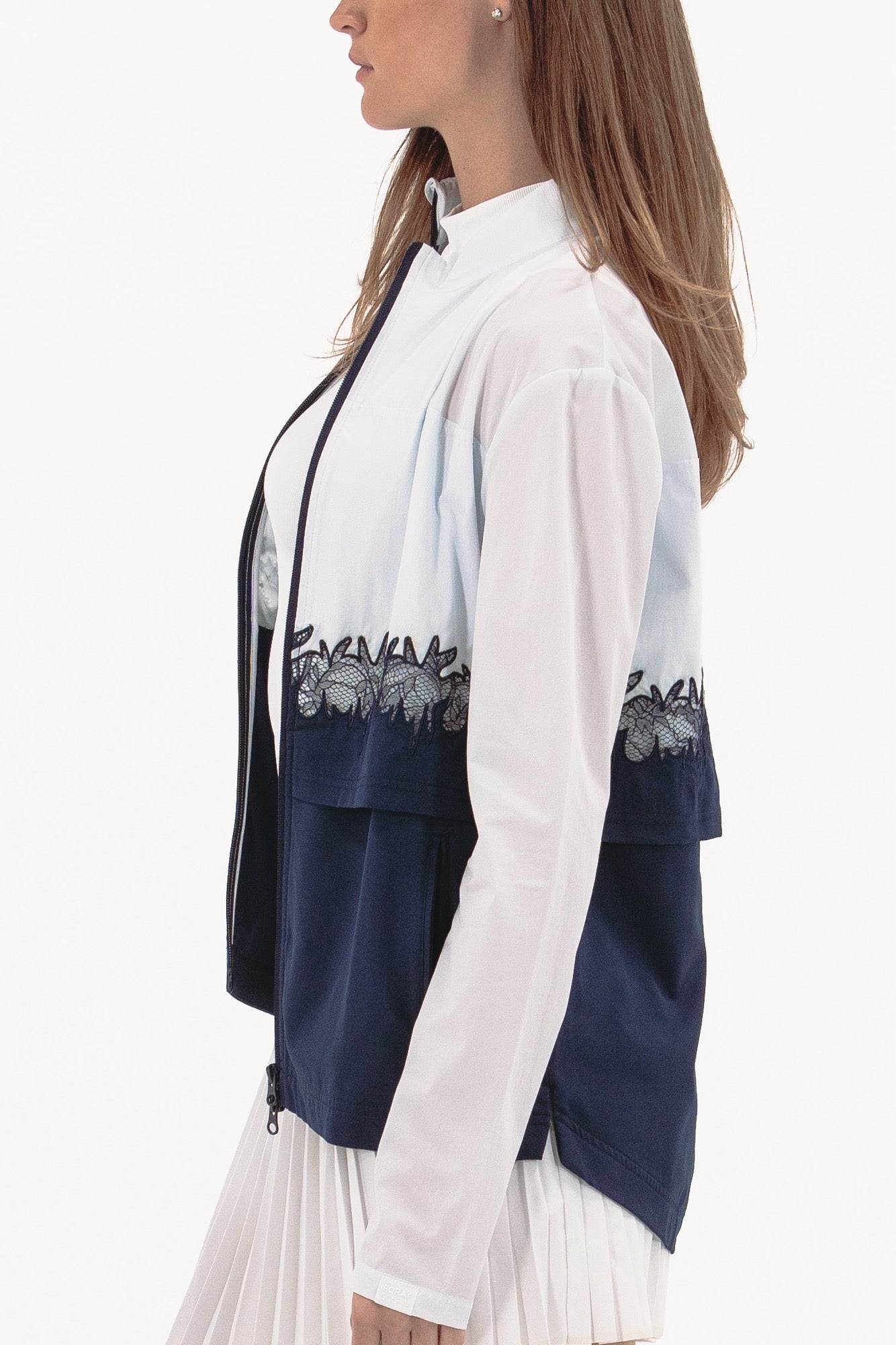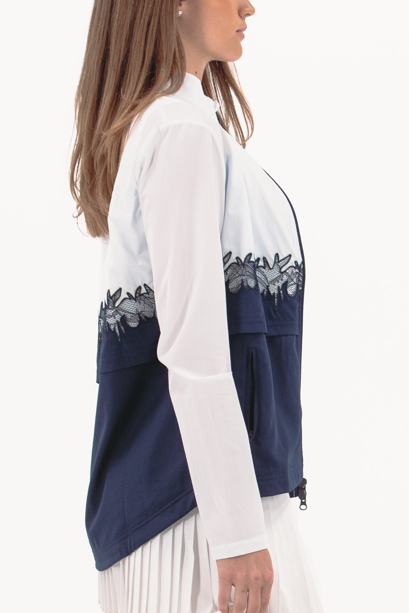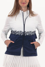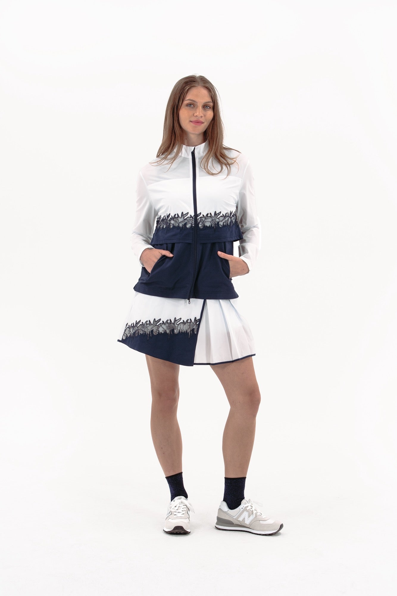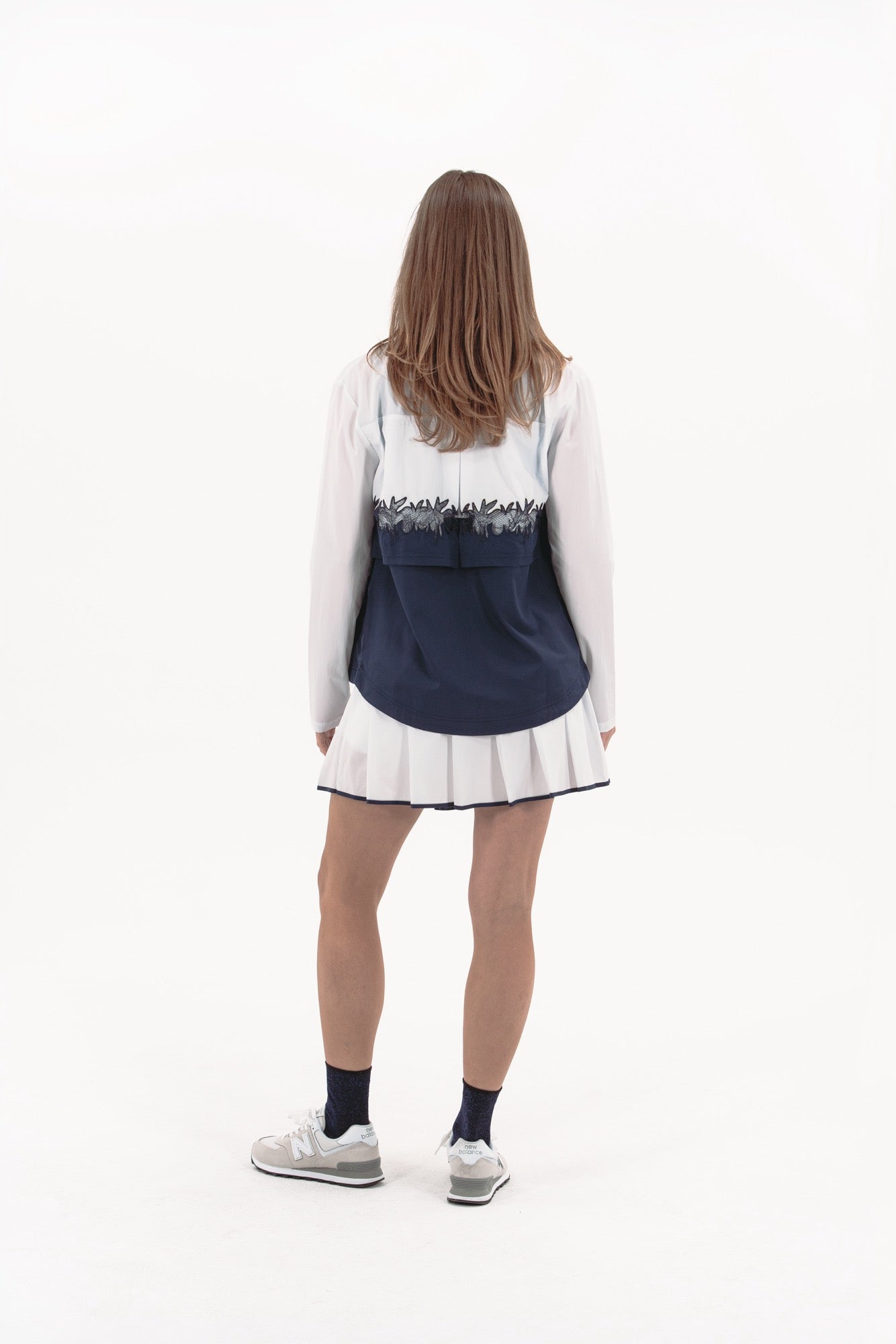 A delicate edge meets technical precision. This limited-edition skirt and jacket feature a custom lace inset—crafted from real lace and stitched in a sketched version of the Foray logo for a subtle nod to our signature. The tonal embroidery blends art and identity, while the placement offers just enough contrast to catch the eye without interrupting your game. Feminine, unexpected, and entirely exclusive.