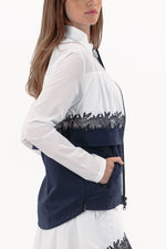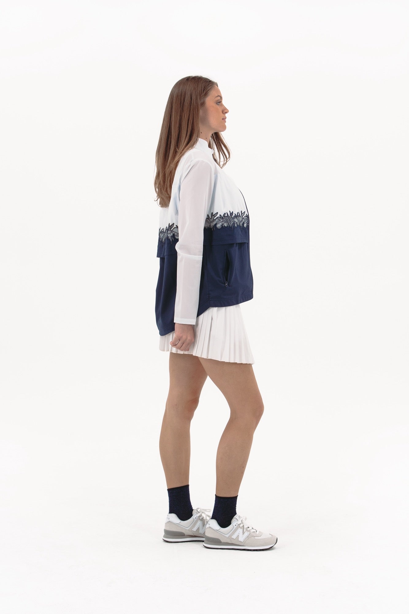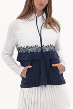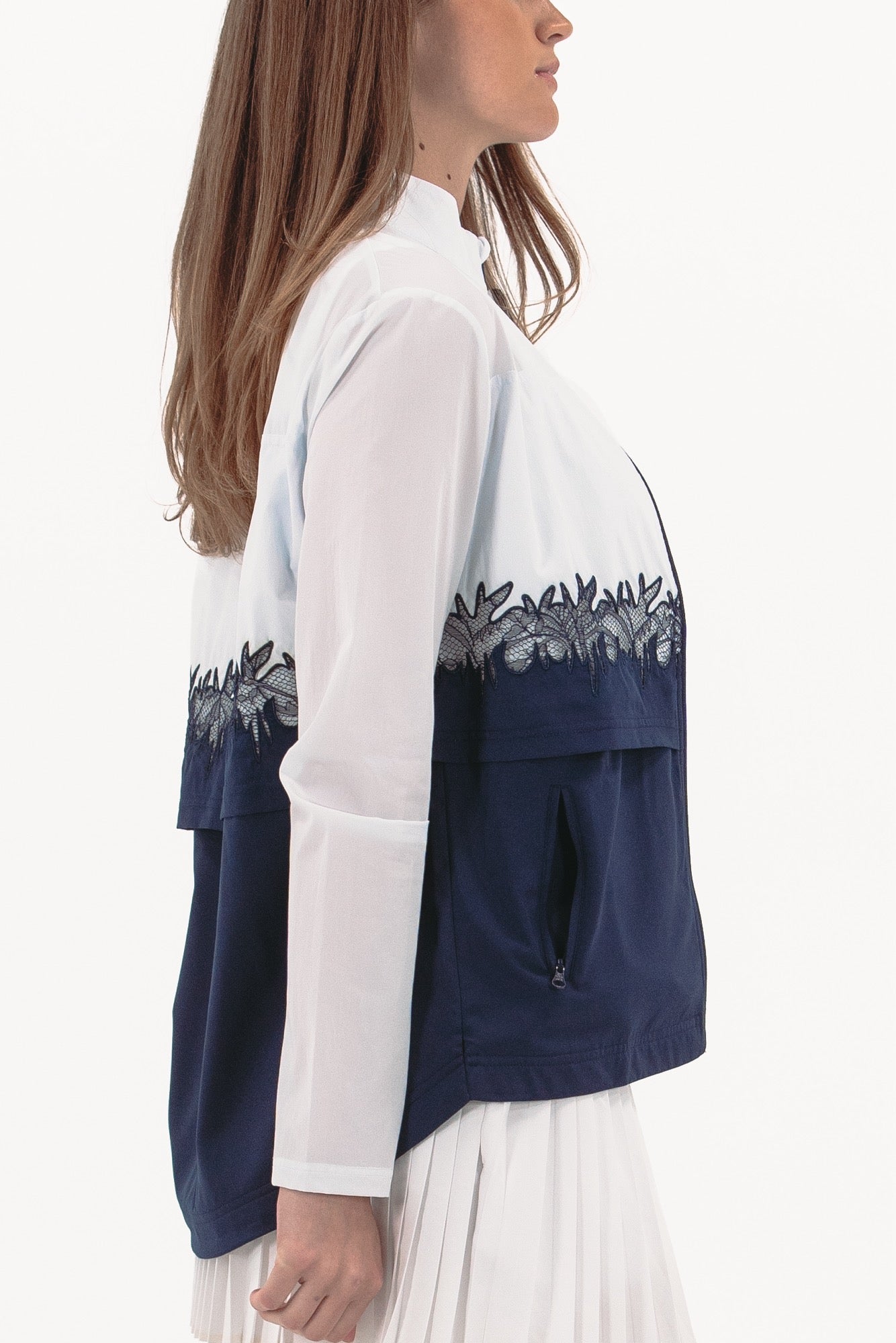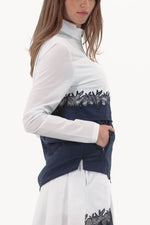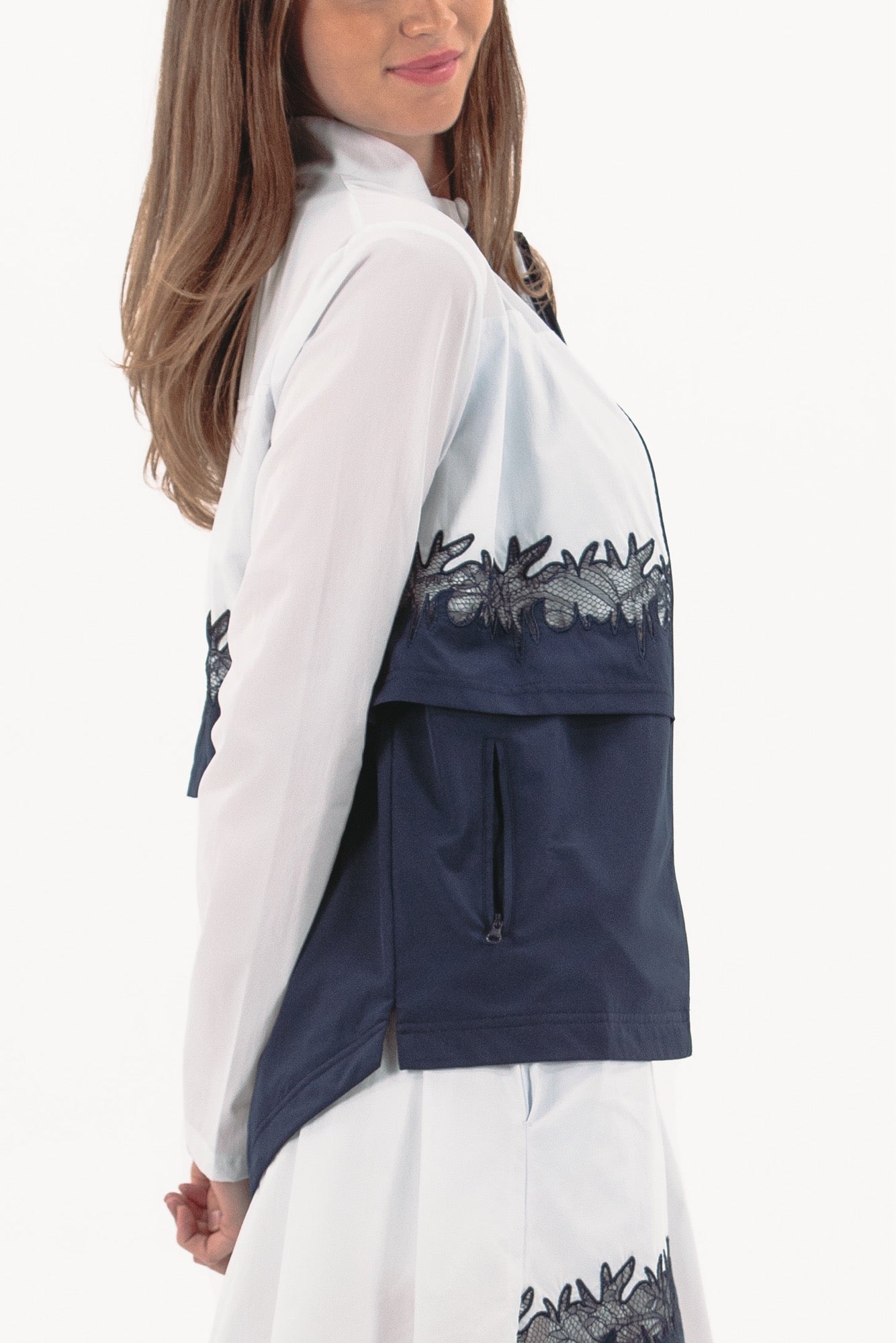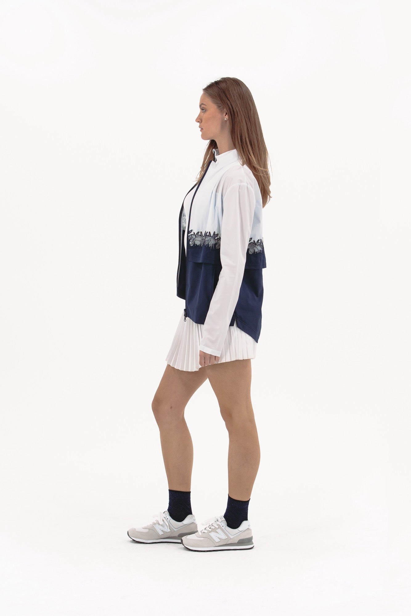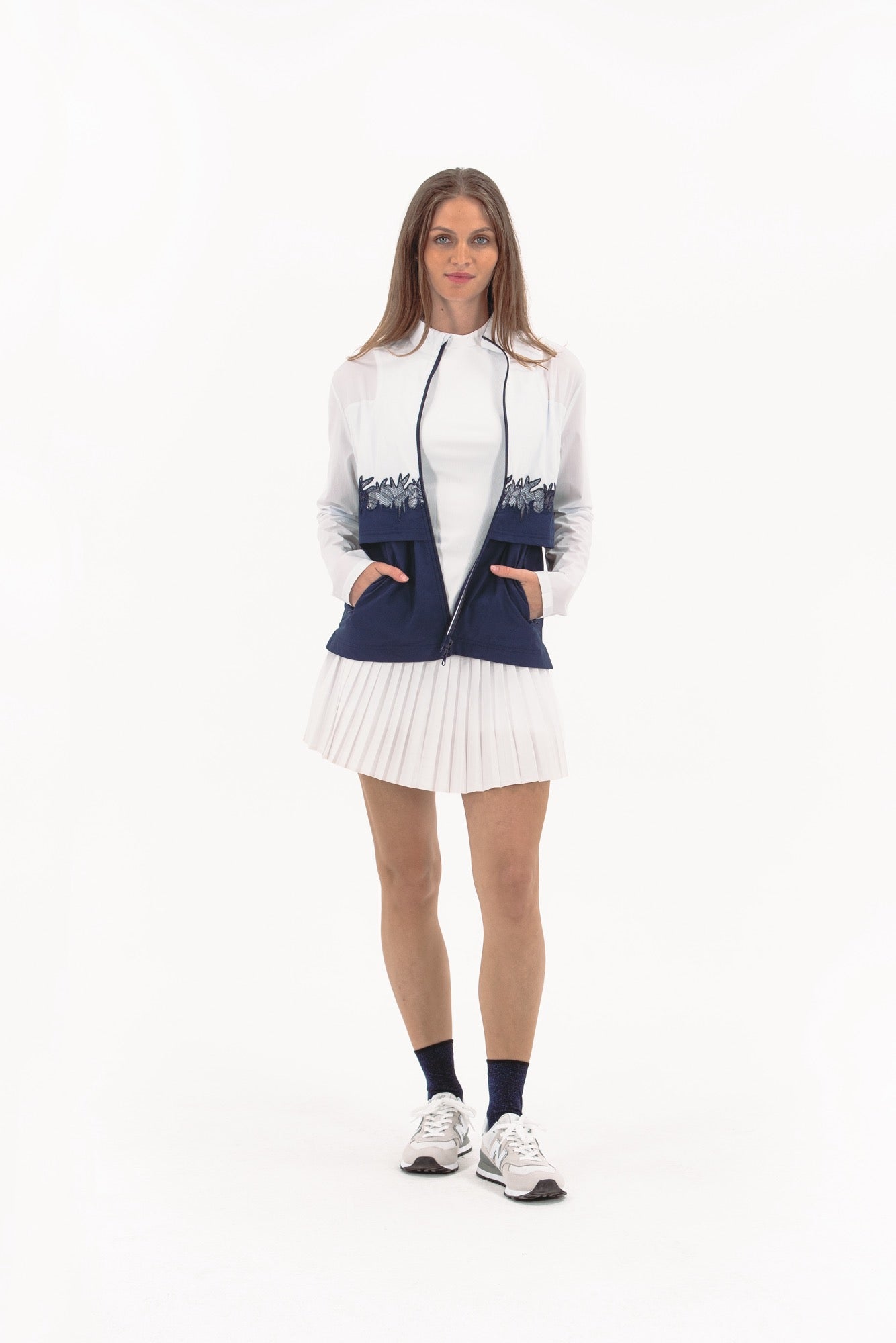 A delicate edge meets technical precision. This limited-edition skirt and jacket feature a custom lace inset—crafted from real lace and stitched in a sketched version of the Foray logo for a subtle nod to our signature. The tonal embroidery blends art and identity, while the placement offers just enough contrast to catch the eye without interrupting your game. Feminine, unexpected, and entirely exclusive.