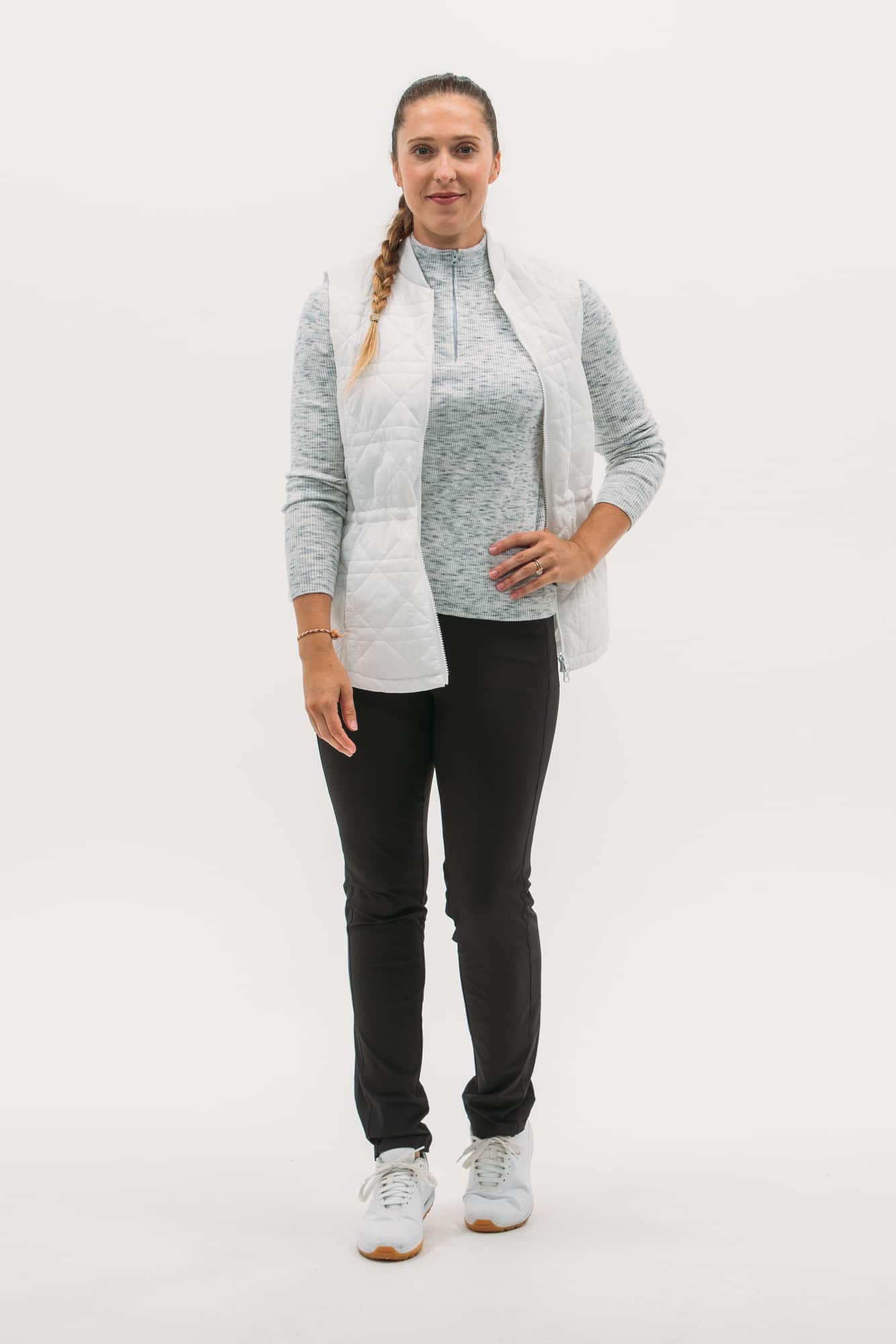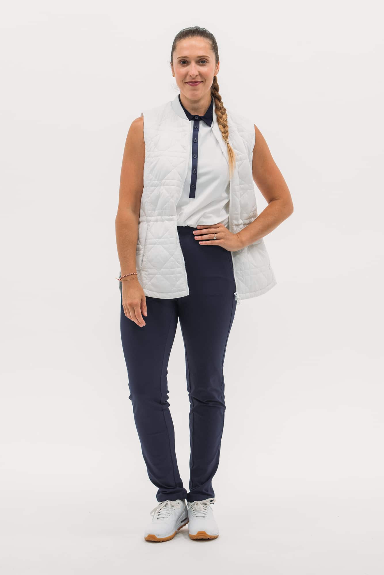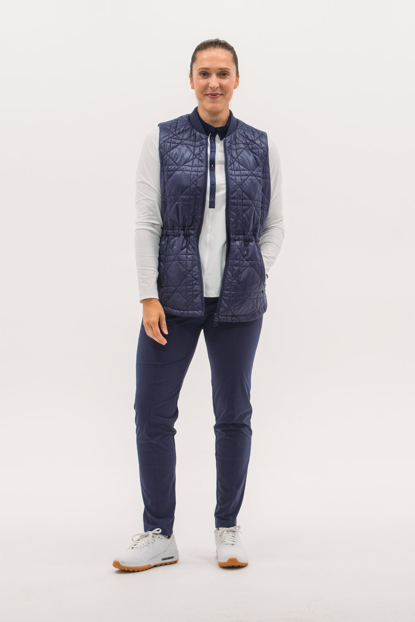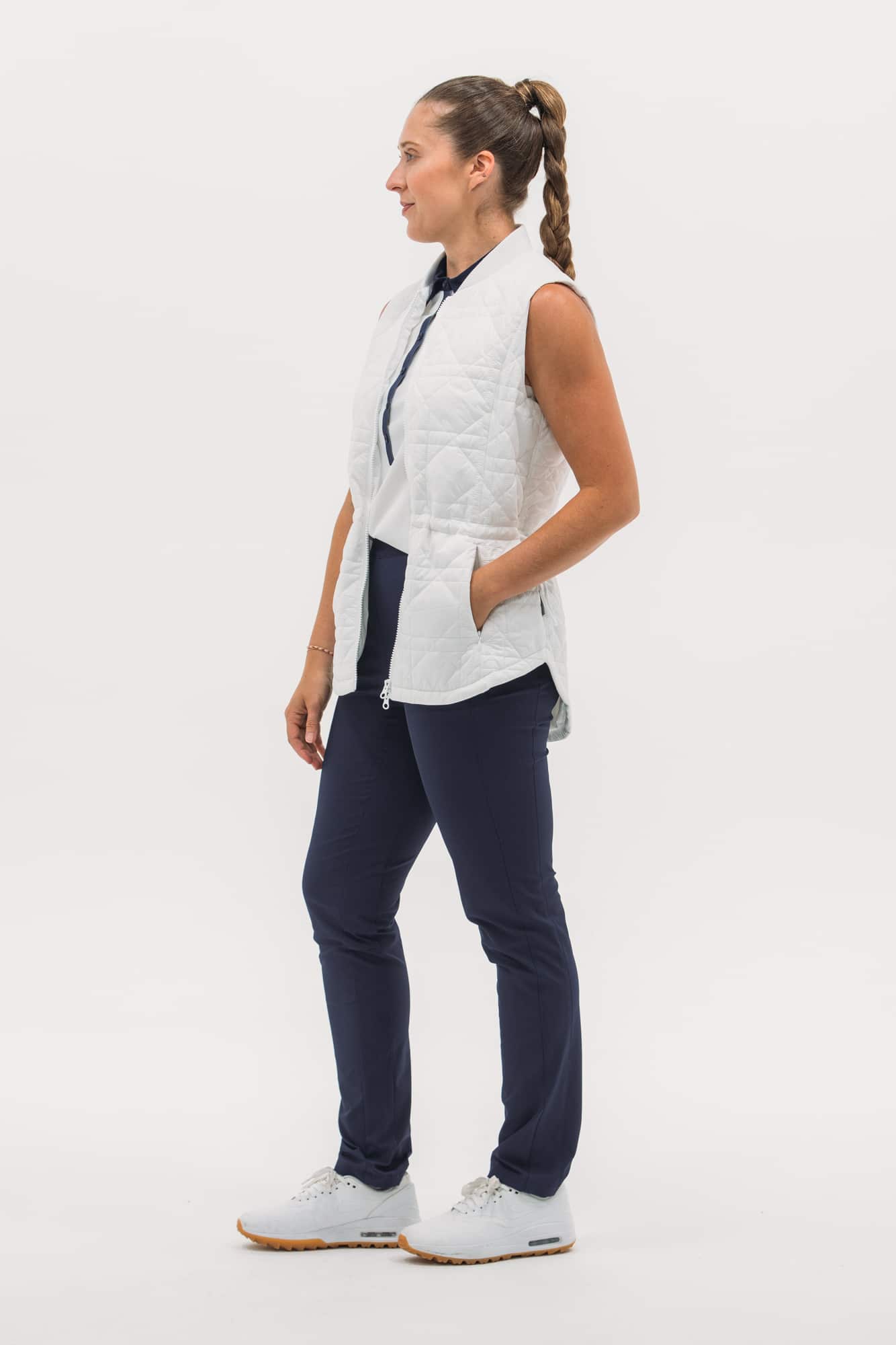 Our packable quilted vests are ideal for layering: lightweight and not bulky. Featuring a nylon water-repellent shell filled with insulating synthetics that won't harm any geese. Even better, they pack in a neat little pouch, perfect for travel or mid-round temperature drops. This long-line version features a new quilted-cane pattern, two-way zip, pockets and waistband toggle for fit.