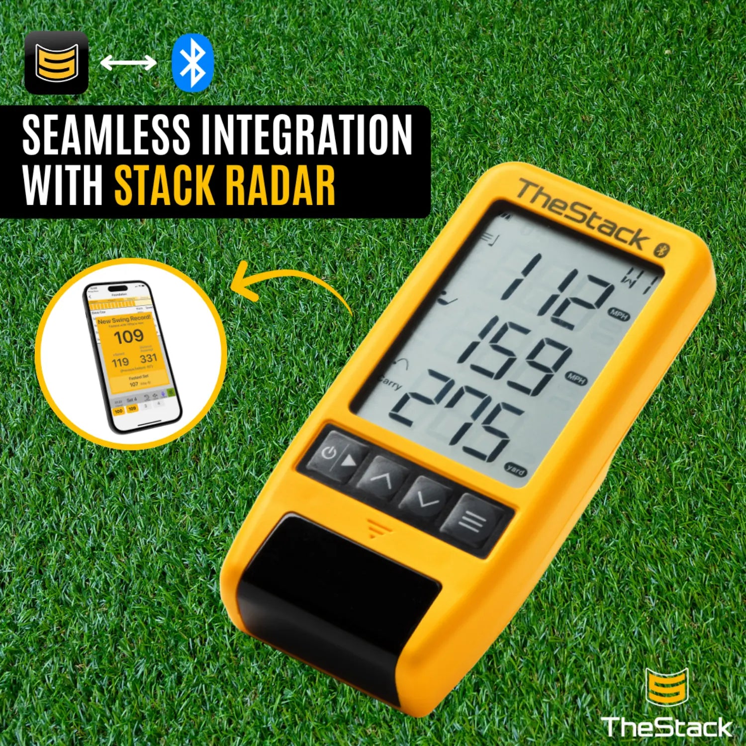 Stack Radar is a great multi-purpose launch monitor that packs into your golf bag easily, making it perfect for speed training with TheStack, Stack Wedge practice on the range or indoors, and measuring your speeds on the course.