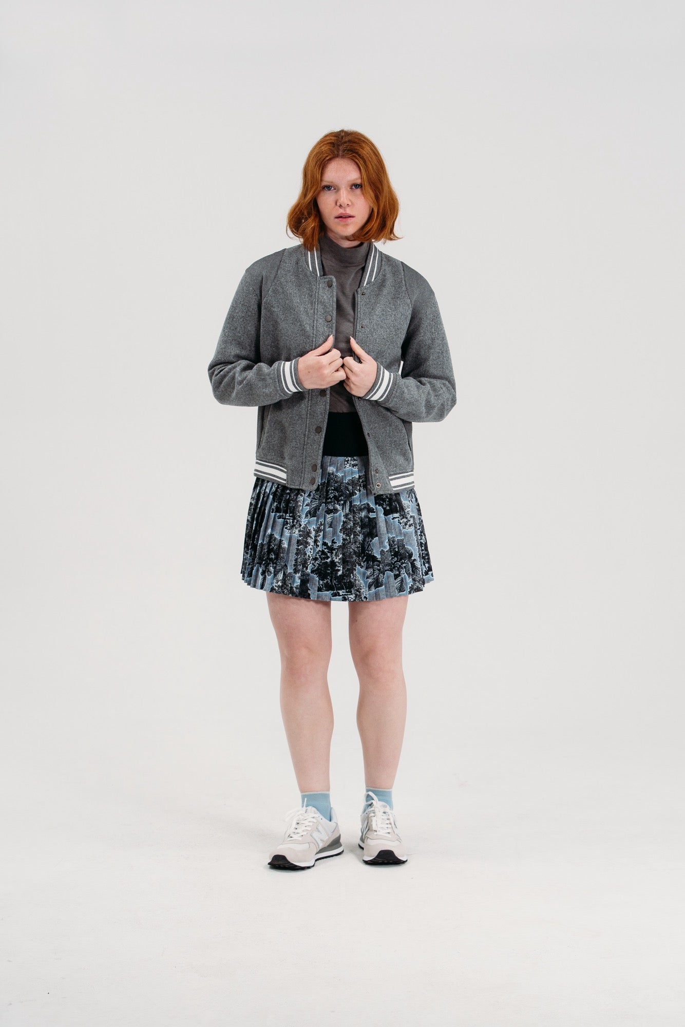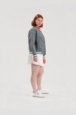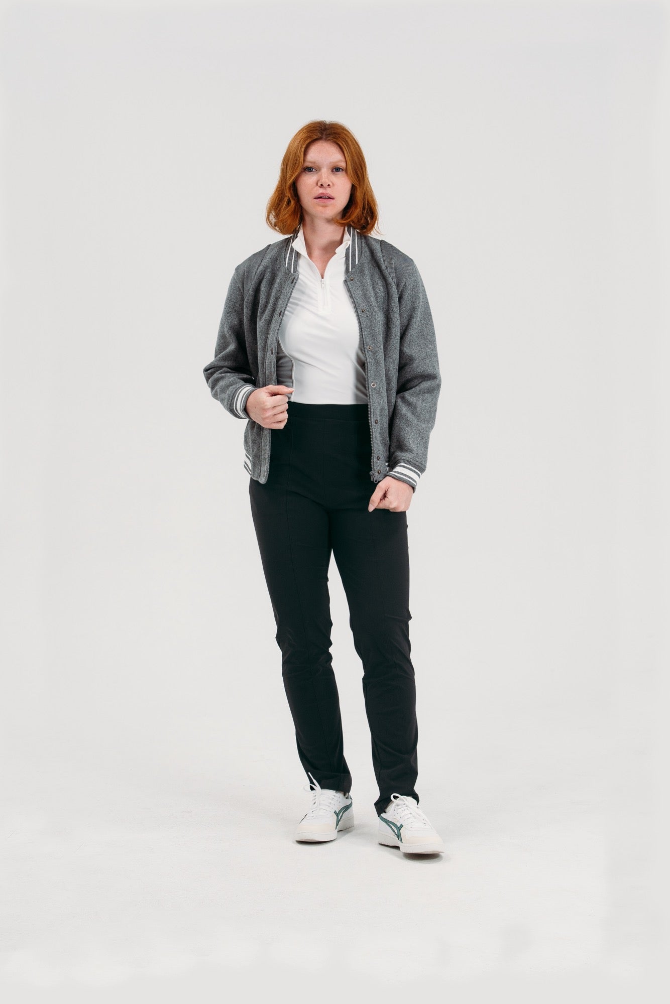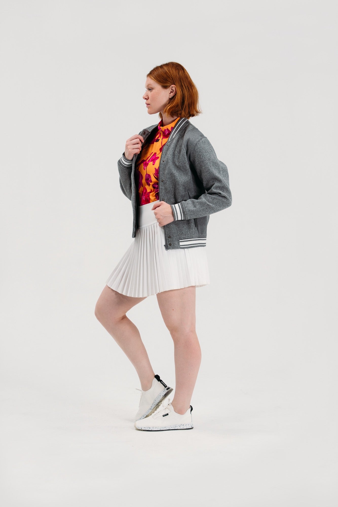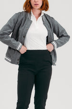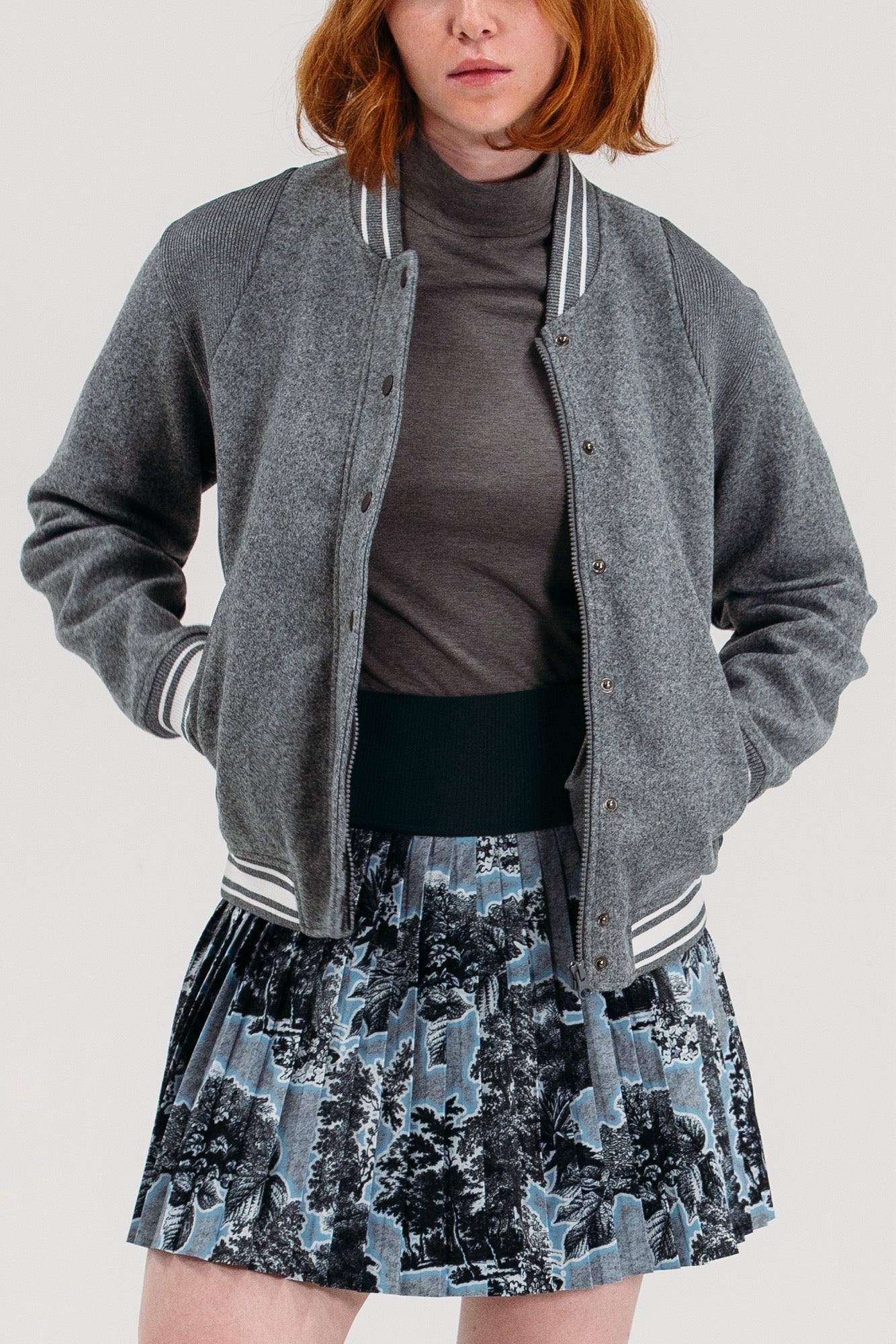 Ivy-league campus inspired, check out our famous bomber made just right for Fall. Crafted out of technical felted knit and trimmed with coordinating rib trim  across shoulders and sides for added stretch and mobility. Versatile and totally of the moment - wear her with literally anything to exude prep-school-cool