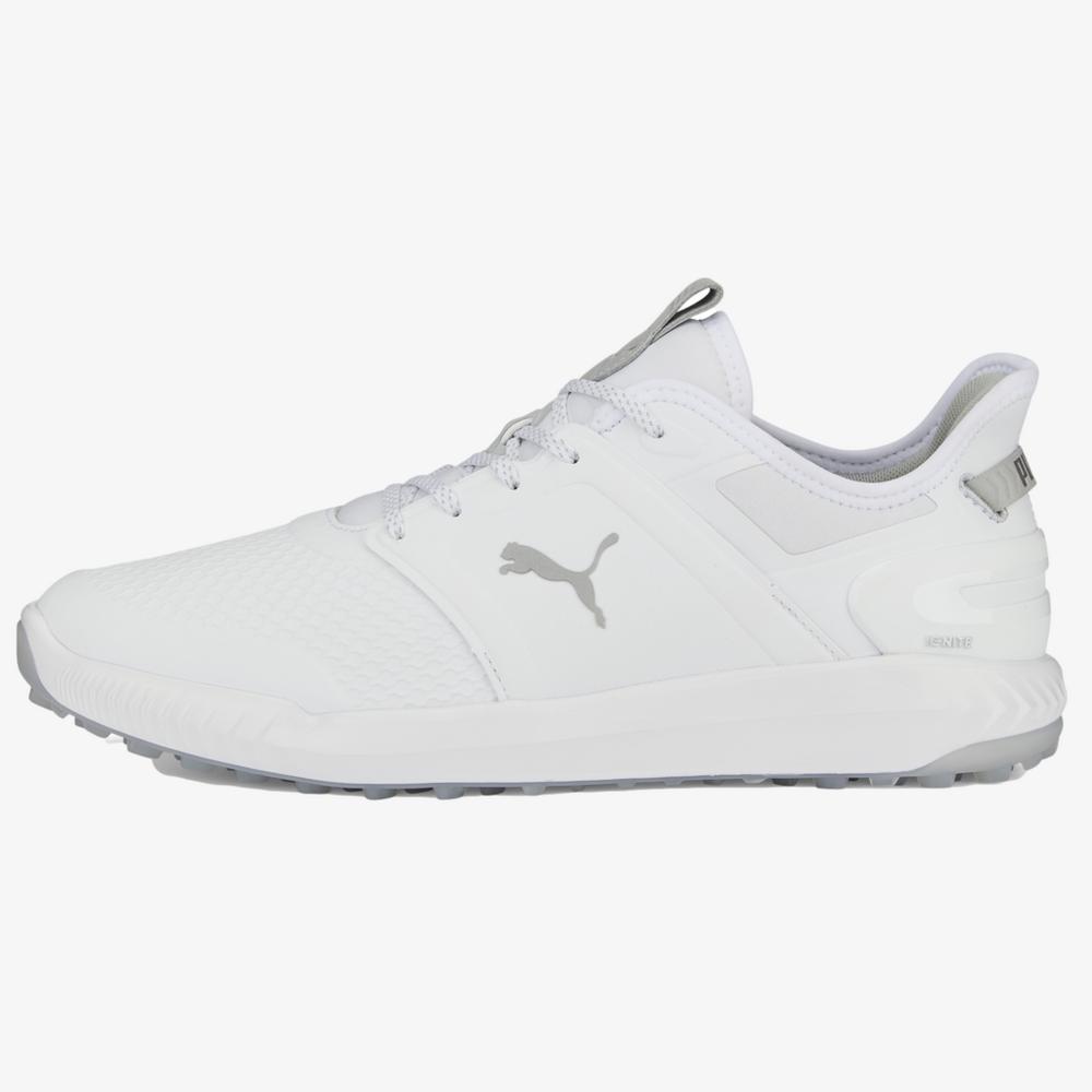PUMA IGNITE ELEVATE Men's Golf Shoe Grip the ground no matter the lie in the IGNITE ELEVATE golf shoe. Built for strength and stability, the ELEVATE boasts PWRFRAME and PWRCAGE technology to follow you throughout your entire swing in effortless comfort. IGNITE FOAM Revolutionary and proprietary midsole foam provides energy return, responsive comfort, stable cushioning, and superior step-in comfort. EXOSHELL Upper material with engineered mesh to provide structure, fused underneath TPU film that provides support and a 1-year waterproof warranty. PWRSADDLE Super strong and lightweight TPU saddle provides excellent support and stability throughout your swing. PROFORM TPU OUTSOLE Spikeless traction that utilizes a circular pattern to provide traction in any direction. Additonal Feautres: ARTICULATION GEOMETRY Comfort Construction PWRCAGE PWRFRAME IGNITE Foam 1 Year Waterproof