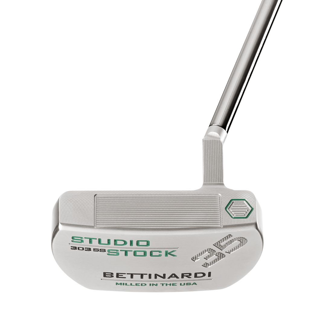 Robert Bettinardi is proud to introduce the all-new Studio Stock 35 to the 2023-2024 Studio Stock line! This compact mallet offers a fresh look with widened shoulders that distribute weight evenly toward the perimeter of the putter, increasing MOI (Moment of Inertia) and making the putter more forgiving for off-center strikes. The Slant neck provides a three-quarter shaft of offset for easy alignment and setup, while one-third toe hang supports players with a slight to moderate arc in their putting stroke. Milled at our Tinley Park, IL headquarters from 303 Stainless Steel and featuring our Roll Control™ face milling, the new Studio Stock 35 offers the feeling of a blade putter with the look of a mallet.