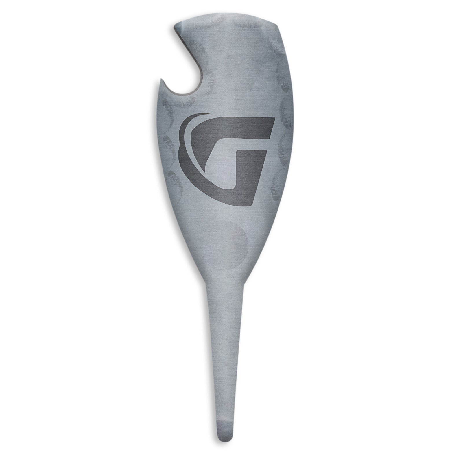 This hand-forged steel tool combines a bottle opener with a single-prong pitch tool, featuring the GolfN 'G' logo. Each piece is crafted with precision, providing a unique and durable accessory for your golf bag. The practical design ensures functionality on and off the course, making it a versatile addition to your gear.
