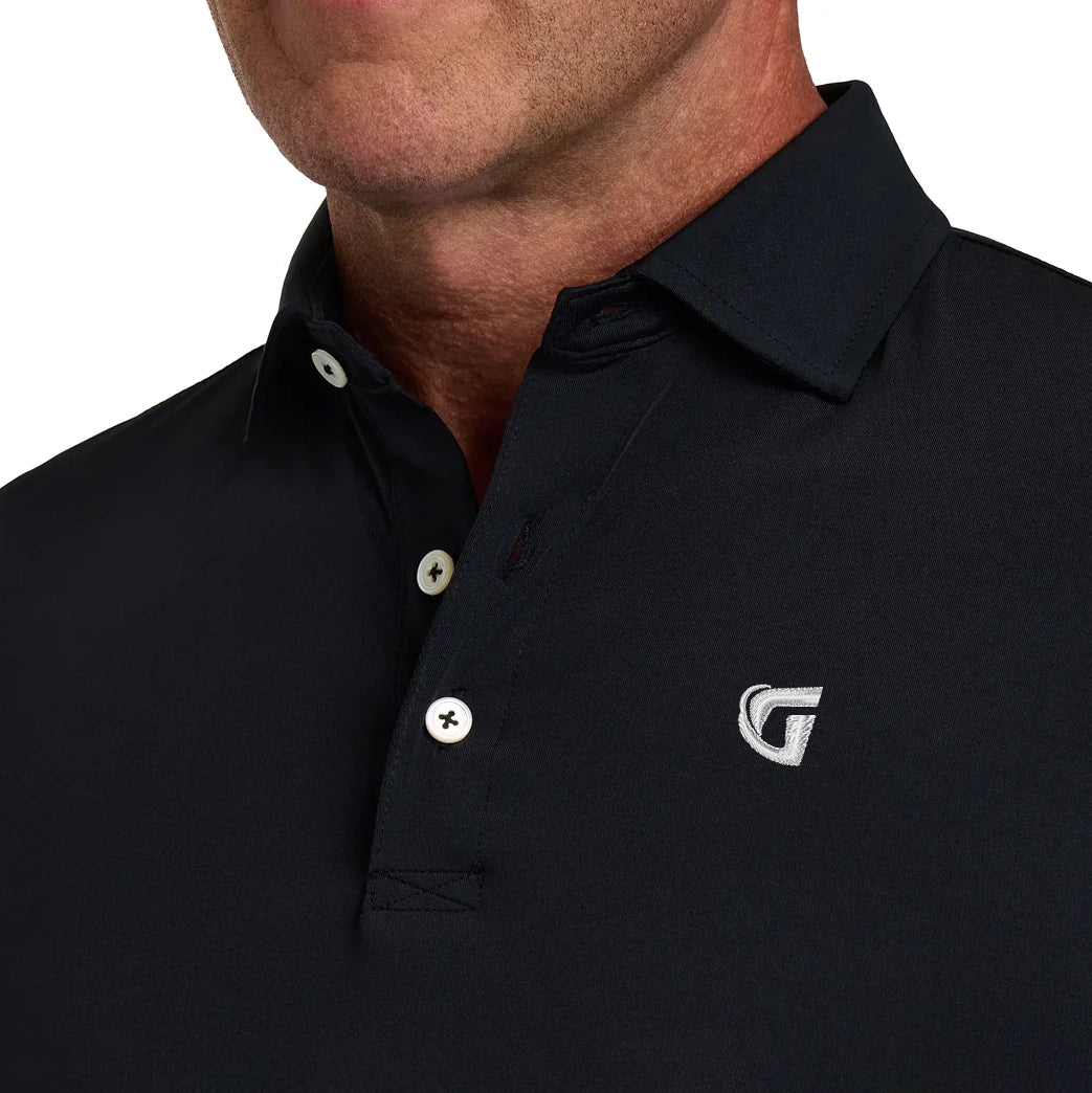 The Anderson Polo is a versatile, solid jersey knit shirt, perfect for year-round wear. Crafted from an 88% polyester and 12% elastane blend, it offers excellent stretch, moisture-wicking properties, and a soft hand feel for superior comfort. Designed with H&B's tailored fit, it features a structured spread collar with sewn-in stays and a three-button set-in placket for a polished look. Additionally, it offers UPF 50+ sun protection to keep you safe during sunny rounds. The GolfN 'G' logo is embroidered on the left chest, adding a distinctive touch to this high-performance polo.