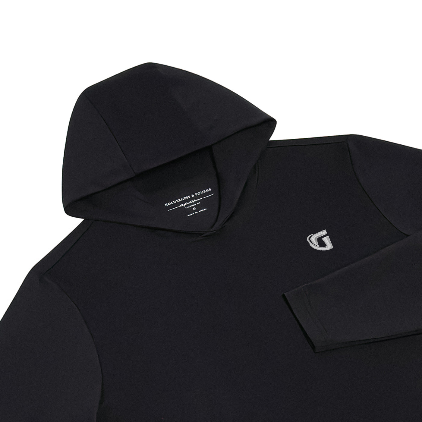 The Jackson Pullover is a lightweight performance hoodie, crafted from one of the softest fabrics developed by H&B. Made from a 94% polyester and 6% elastane blend, it offers superior comfort and flexibility. Featuring H&B's tailored fit, it includes a streamlined design without drawstrings or pouches, and a straight hem and cuffs. The pullover also has a tonal H&B embroidered icon on the side panel. The GolfN 'G' logo is embroidered on the left chest, adding a distinctive touch.